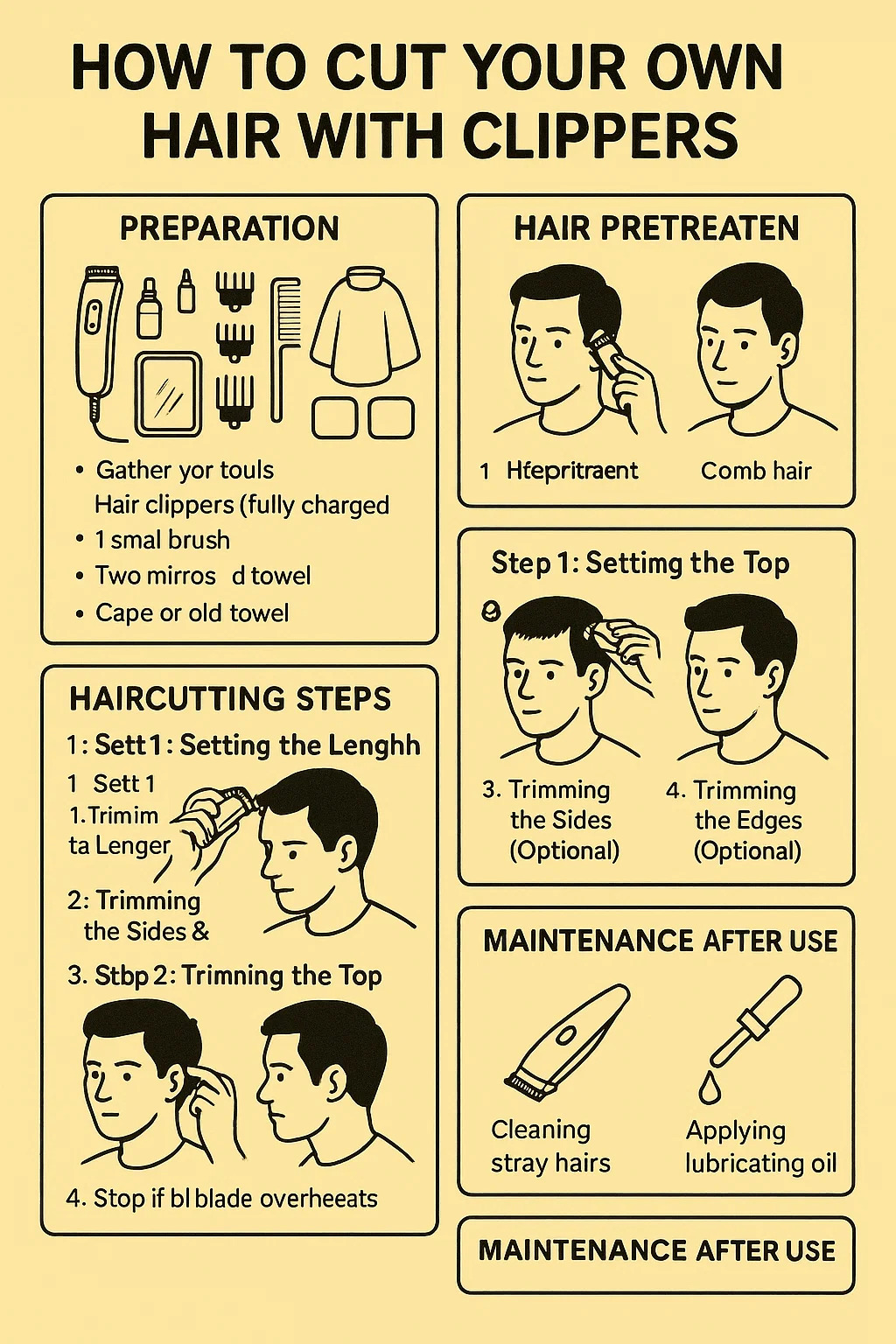 Omien hiusten leikkaaminen hiusleikkurit ei ole vaikeaa; voit tehdä sen itse, kunhan hallitset perusvaiheet ja -tekniikat. Tässä on yksinkertainen ja käytännöllinen opas: