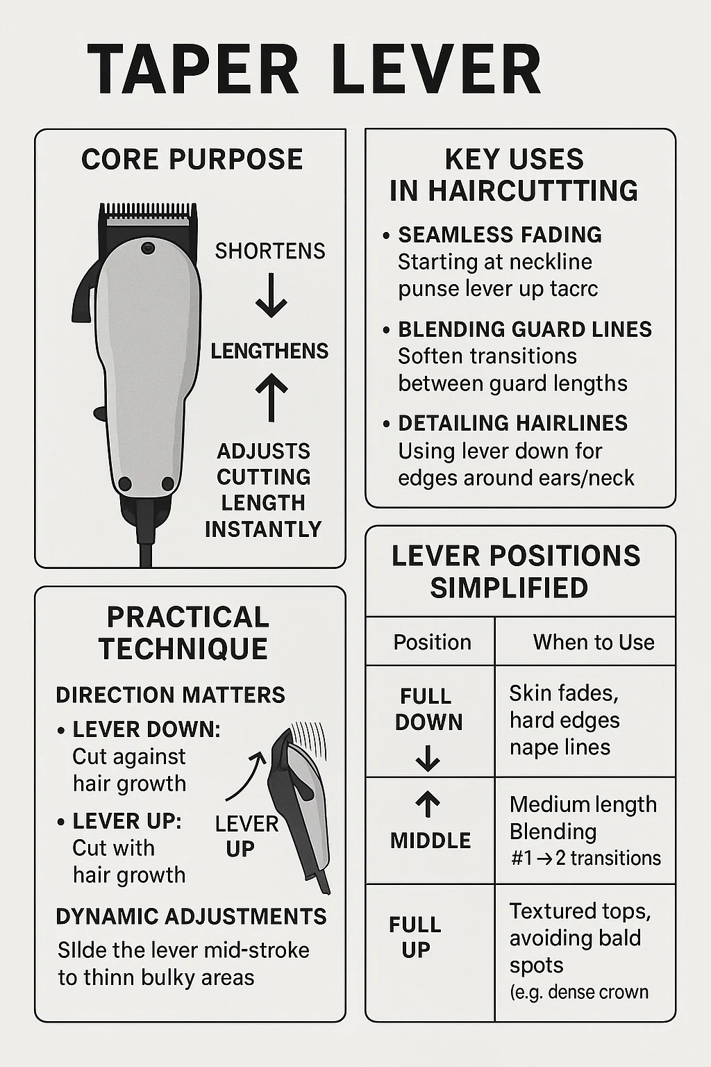 Vipu hiusleikkurit (usein kutsutaan kartiovivun tai terän säätövivuksi) palvelee tarkkaa toimintoa, joka on välttämätön ammattimaisten hiusten leikkauksille. Alla on käytännöllinen erittely: